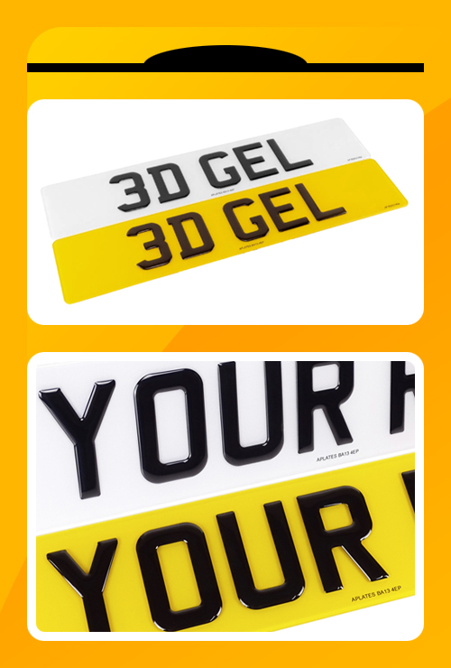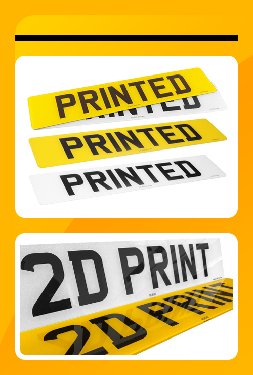 Many of our number plate badges can be purchased as either a 2D print, or as a 3D embossed print. Whether you are choosing a predesigned number plate, designing your own number plate with our Plate Builder, or buying a Separate Badge on it’s own, you can decide between the 2D and 3D options.